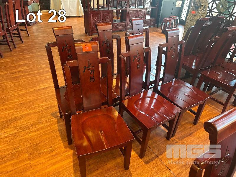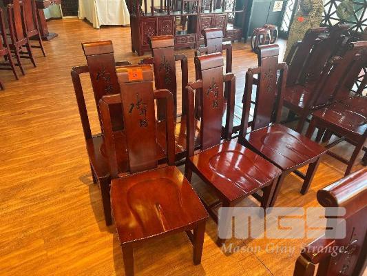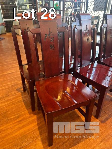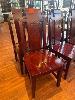 6 x RED SOLID TIMBER DINING CHAIRS, HIGH BACK