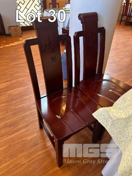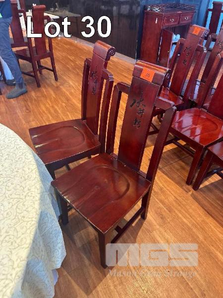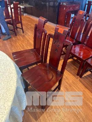6 x RED SOLID TIMBER DINING CHAIRS, HIGH BACK