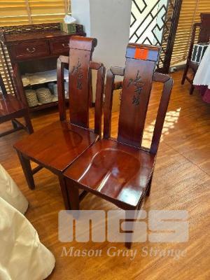 6 x RED SOLID TIMBER DINING CHAIRS, HIGH BACK