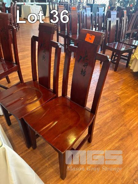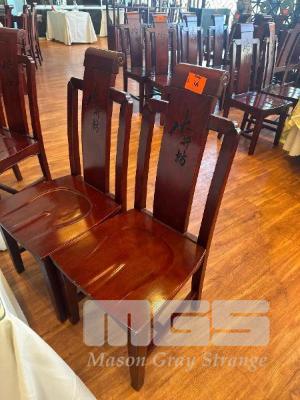 6 x RED SOLID TIMBER DINING CHAIRS, HIGH BACK