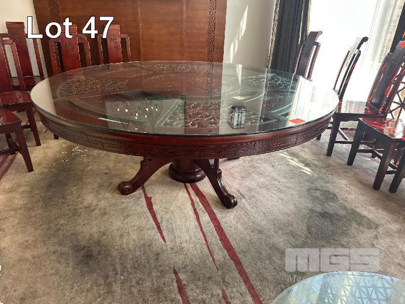 CIRCULAR ORIENTAL RED SOLID TIMBER GLASS TOP TABLE, 1800mm (D)