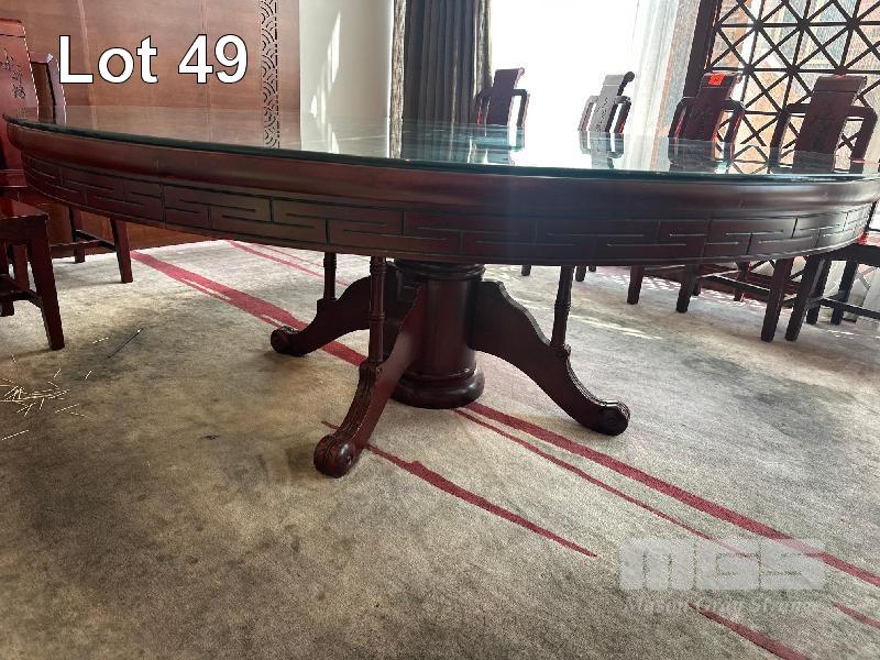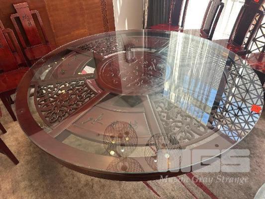 CIRCULAR ORIENTAL RED SOLID TIMBER GLASS TOP TABLE, 1800mm (D)