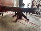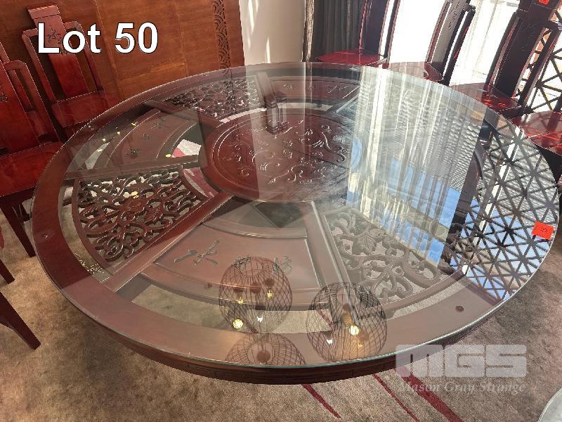 CIRCULAR ORIENTAL RED SOLID TIMBER GLASS TOP TABLE, 1500mm (D)