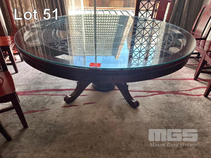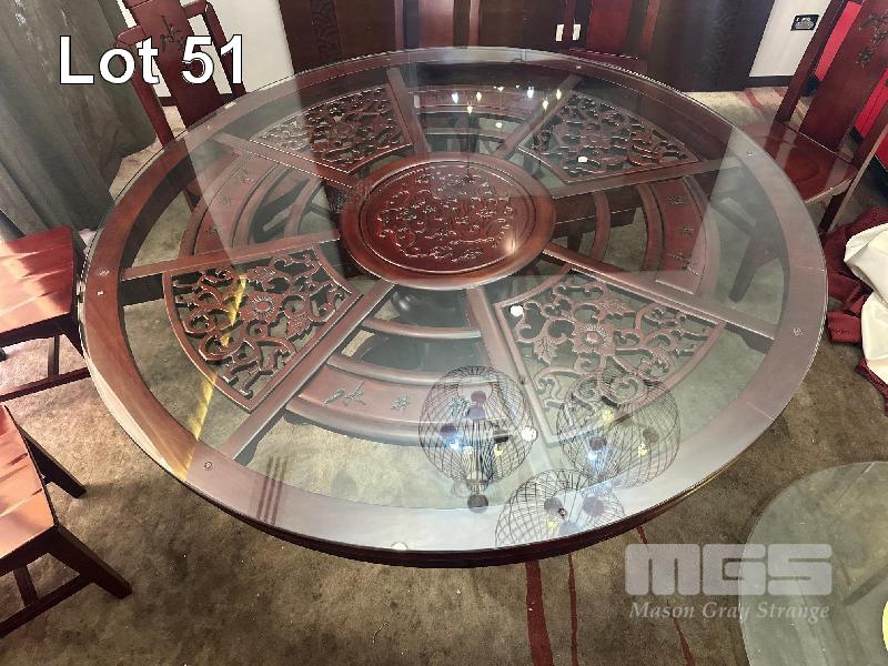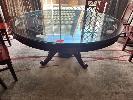 CIRCULAR ORIENTAL RED SOLID TIMBER GLASS TOP TABLE, 1500mm (D)