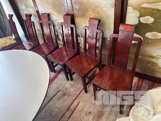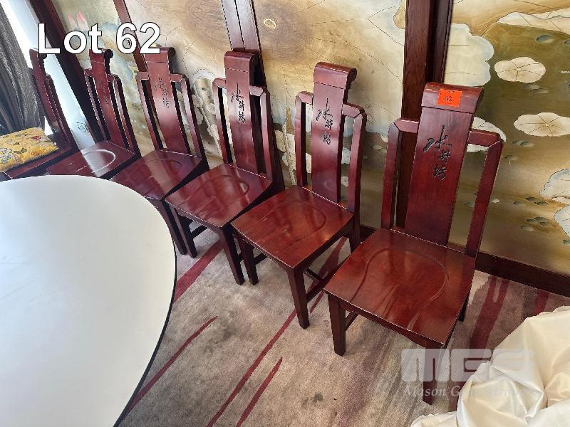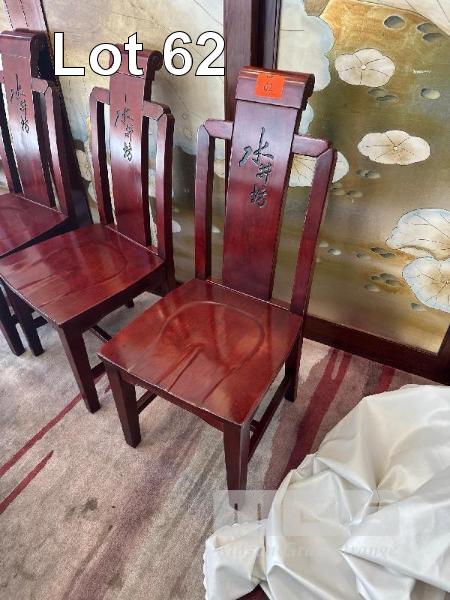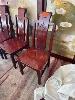 6 x RED SOLID TIMBER DINING CHAIRS, HIGH BACK