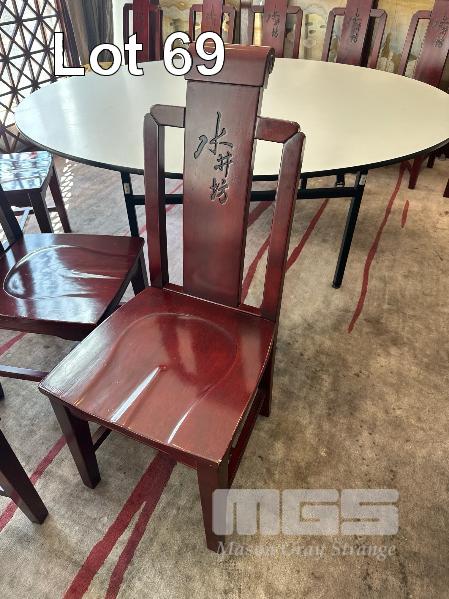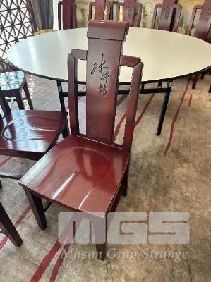 6 x RED SOLID TIMBER DINING CHAIRS, HIGH BACK