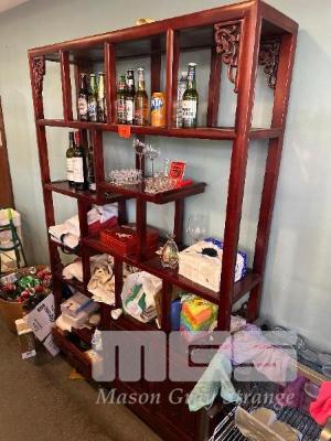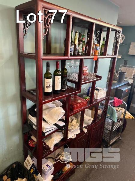 ORNATE RED TIMBER SHELVING UNIT, 1300 x 320 x 1970mm (H)