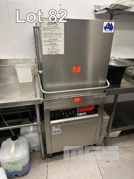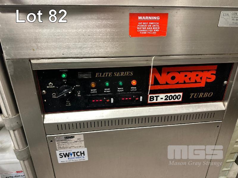 NORRIS COMMERCIAL DISHWASHER, MOD: BT2000 TURBO, 3 PHASE, WITH DOSING UNIT & OUT FEED BENCH, 1440 x 700 x 910mm