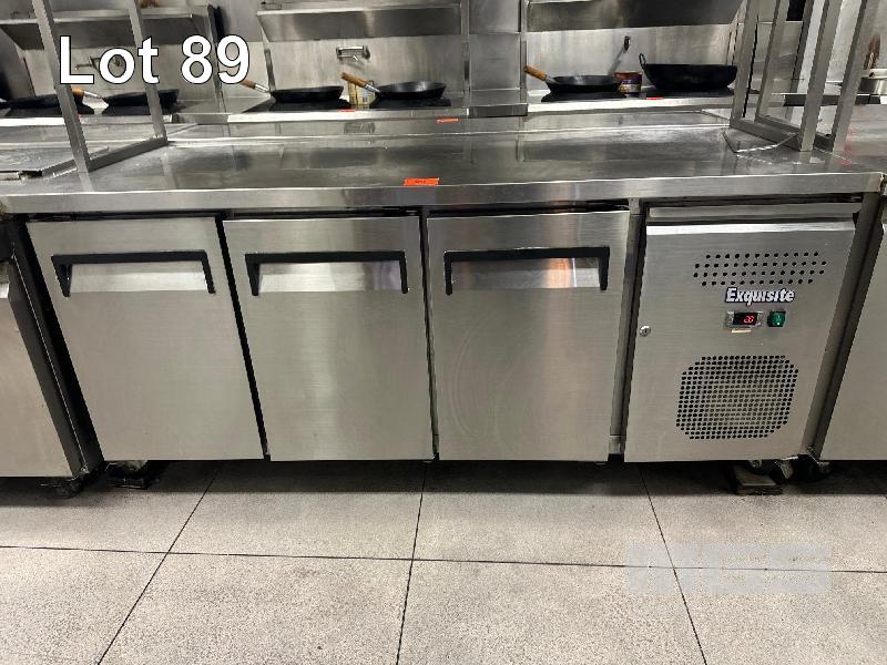 EXQUISITE 3 DOOR PREP FRIDGE, MOD: USC400H, DIGITAL READ OUT, 240V 10 AMP WITH 2 TIER STAINLESS STEEL SHELVING