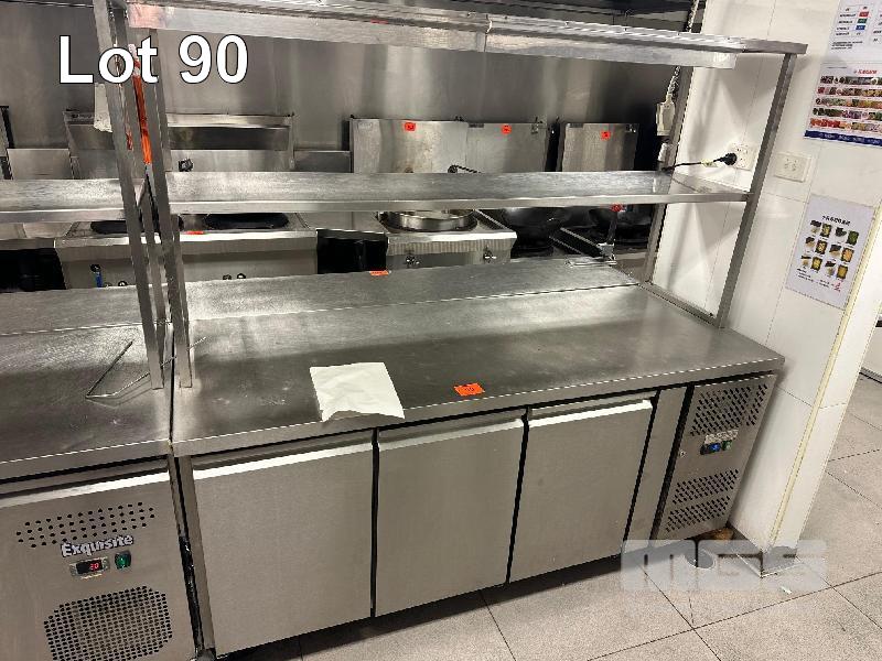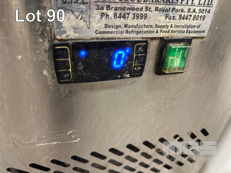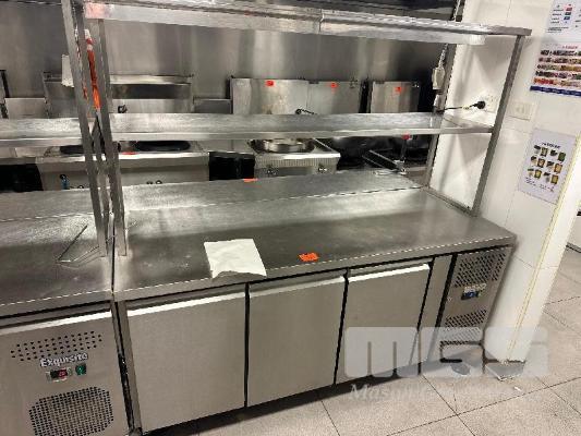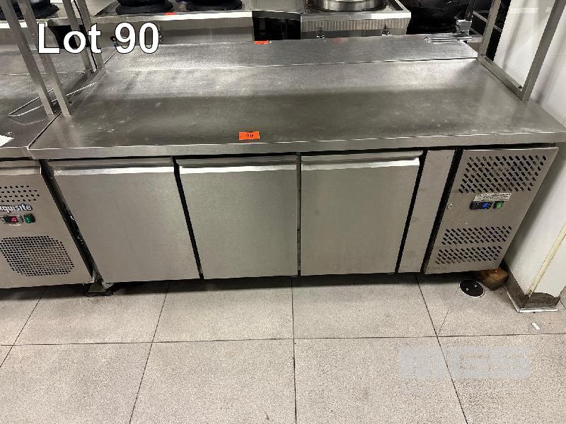 3 DOOR PREP FRIDGE, MOD: GN3100TN, DIGITAL READ OUT, 240V 10 AMP WITH 2 TIER STAINLESS STEEL SHELVING