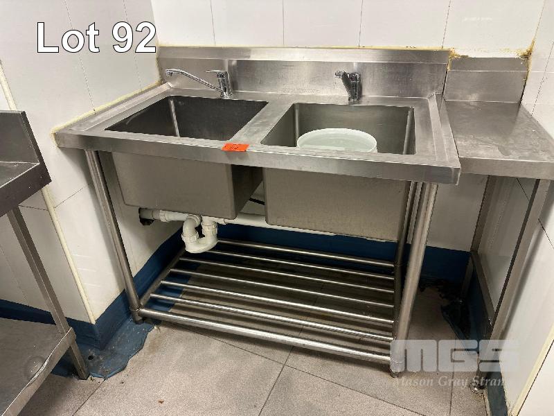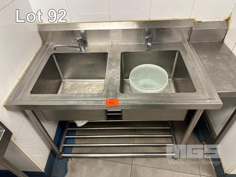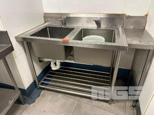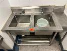 TWIN BOWLS STAINLESS STEEL SINK, 2 MIXER TAPS, 1200 x 700 x 900mm, WITH INFILL BENCH ATTACHED, 270 x 550mm