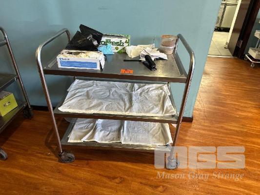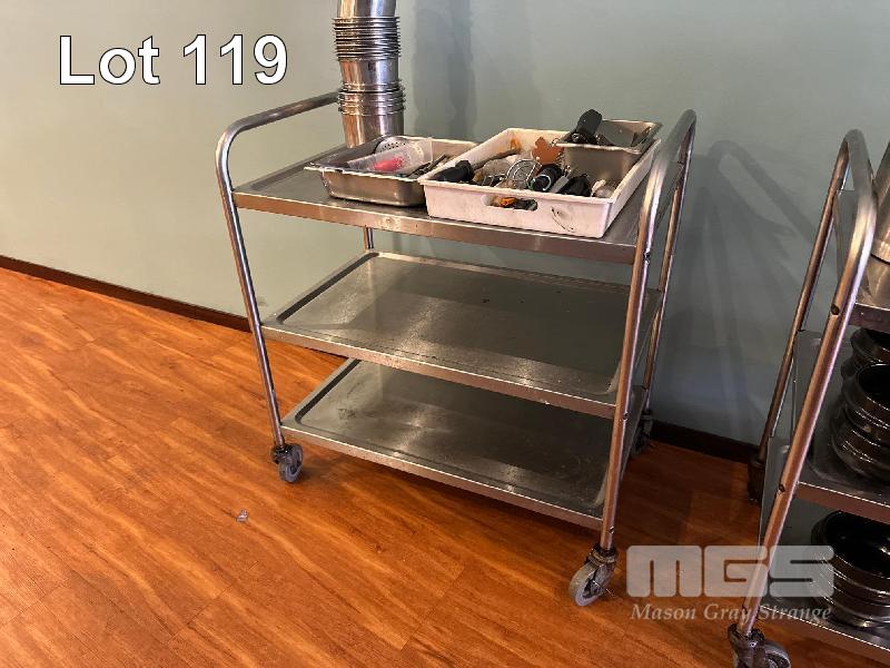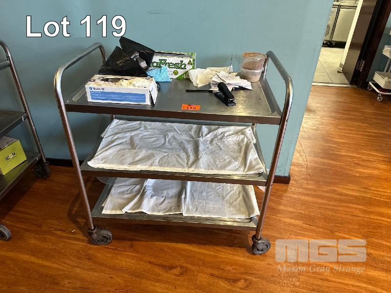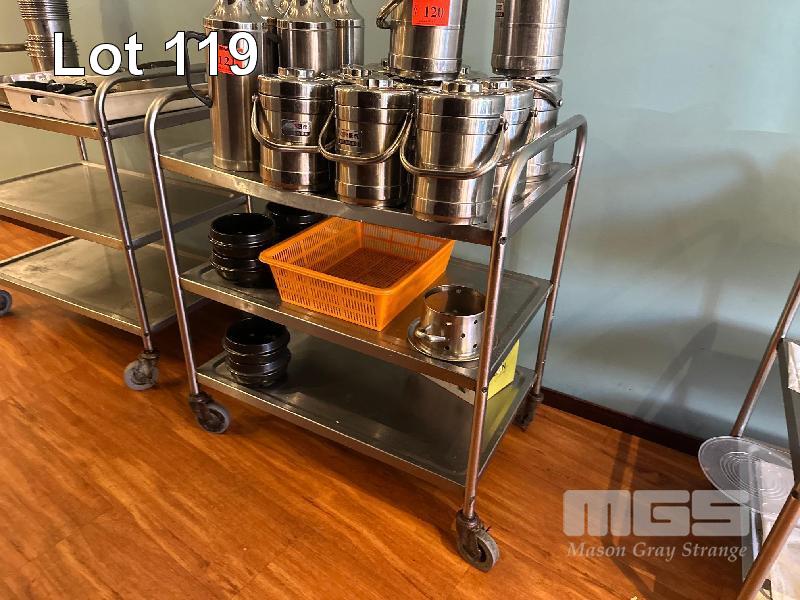 3 x STAINLESS STEEL SERVERS TROLLEYS, 3 TIER, 860 x 500 x 800mm (H)