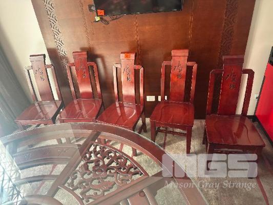 6 x RED SOLID TIMBER DINING CHAIRS, HIGH BACK