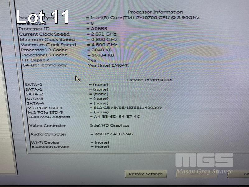 MINI-TOWER PC, DELL PRECISION 3640 WORKSTATION, CORE i7 10700 (10TH GEN) @ 2.9GHz, 16GB DDR4 RAM, 512GB NVMe M.2 SSD, 4GB NVIDIA QUADRO P1000 VIDEO (4mDP), WINDOWS 11 PRO INSTALLED, KEYBOARD & MOUSE S/N:4G56H73