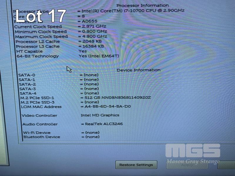 MINI-TOWER PC, DELL PRECISION 3640 WORKSTATION, CORE i7 10700 (10TH GEN) @ 2.9GHz, 16GB DDR4 RAM, 512GB NVMe M.2 SSD, 4GB NVIDIA QUADRO P1000 VIDEO (4mDP), WINDOWS 11 PRO INSTALLED, KEYBOARD & MOUSE S/N:4G58H73
