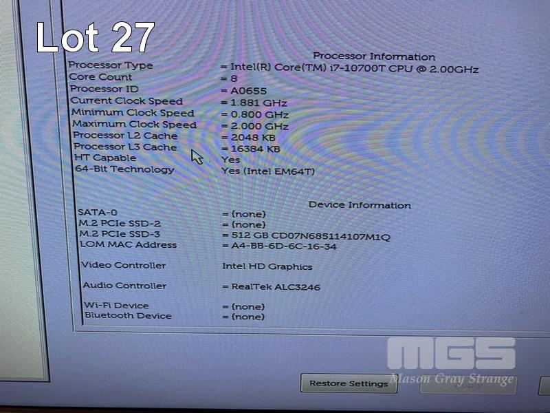 DESKTOP PC, DELL OPTIPLEX 7080 MICRO, CORE i7 10700T (10TH GEN) @ 2GHz, 16GB DDR4 RAM, 512GB NVMe M.2 SSD, INTEL HD VIDEO, 5 x USB, 1 x USB-C, WINDOWS 11 HOME INSTALLED, KEYBOARD, MOUSE & POWER SUPPLY (130W) S/N:5DC8H73