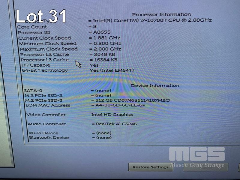 DESKTOP PC, DELL OPTIPLEX 7080 MICRO, CORE i7 10700T (10TH GEN) @ 2GHz, 16GB DDR4 RAM, 512GB NVMe M.2 SSD, INTEL HD VIDEO, 5 x USB, 1 x USB-C, WINDOWS 11 HOME INSTALLED, KEYBOARD, MOUSE & POWER SUPPLY (130W) S/N:5D62H73