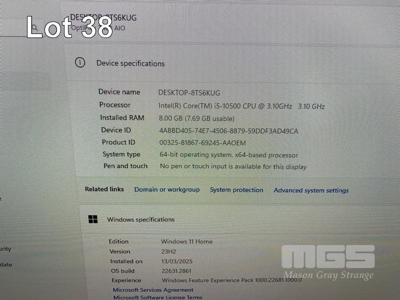 ALL-IN-ONE PC, DELL OPTIPLEX 7480, CORE i5 10500 (10TH GEN) @ 3.1GHz, 8GB DDR4 RAM, 512GB NVMe M.2 SSD, INBUILT 23.8" FHD WIDESCREEN (1920x1080), INTEL HD VIDEO, WEBCAM, 5 x USB, 1 x USB-C, WINDOWS 11 HOME INSTALLED, KEYBOARD & MOUSE S/N:D9XLX53