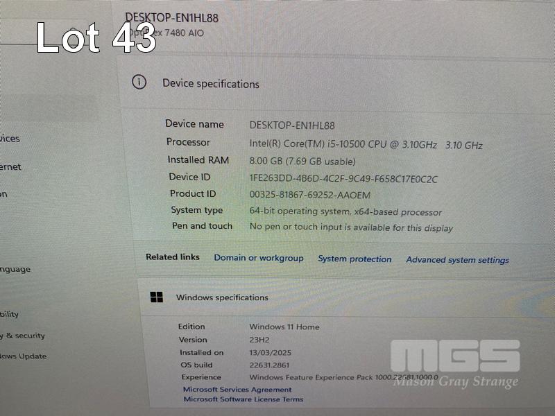ALL-IN-ONE PC, DELL OPTIPLEX 7480, CORE i5 10500 (10TH GEN) @ 3.1GHz, 8GB DDR4 RAM, 512GB NVMe M.2 SSD, INBUILT 23.8" FHD WIDESCREEN (1920x1080), INTEL HD VIDEO, WEBCAM, 5 x USB, 1 x USB-C, WINDOWS 11 HOME INSTALLED, KEYBOARD & MOUSE S/N:DB1FX53