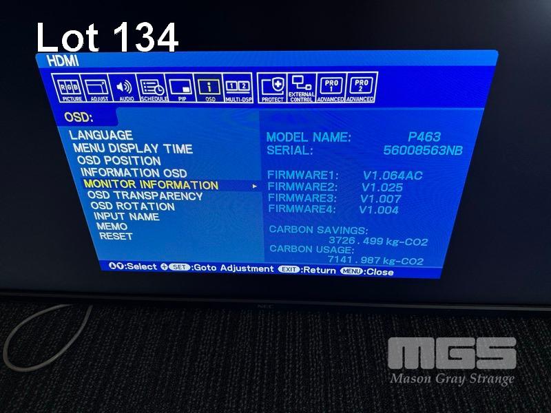 MONITOR, NEC MULTISYNC P463 46" COMMERCIAL LCD DISPLAY (NO REMOTE, NO STAND) S/N:56008563NB