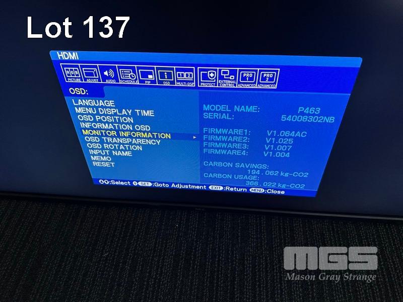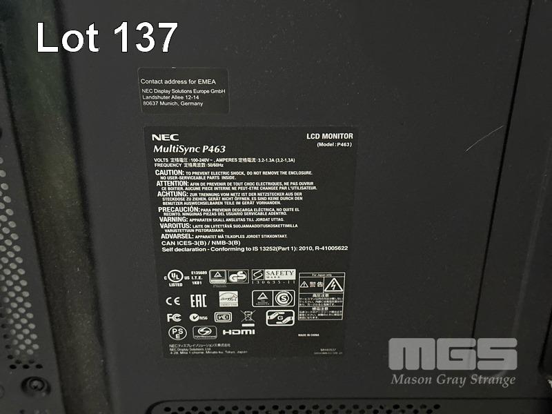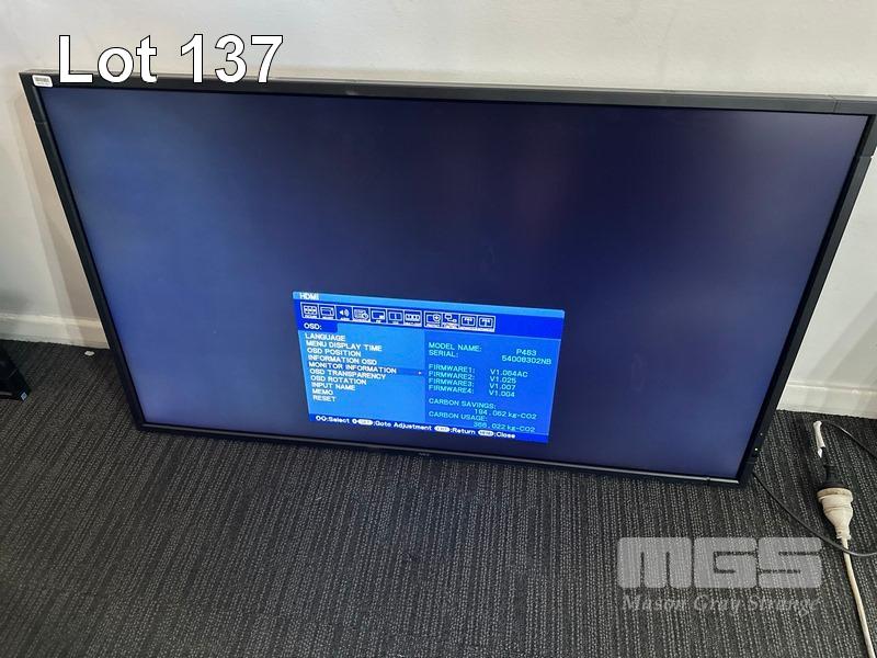 MONITOR, NEC MULTISYNC P463 46" COMMERCIAL LCD DISPLAY (NO REMOTE, NO STAND) (NOTE: SCRATCHES ON SCREEN) S/N:54008302NB