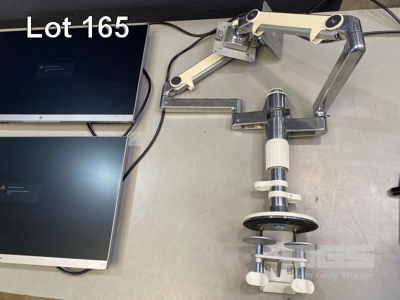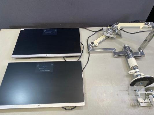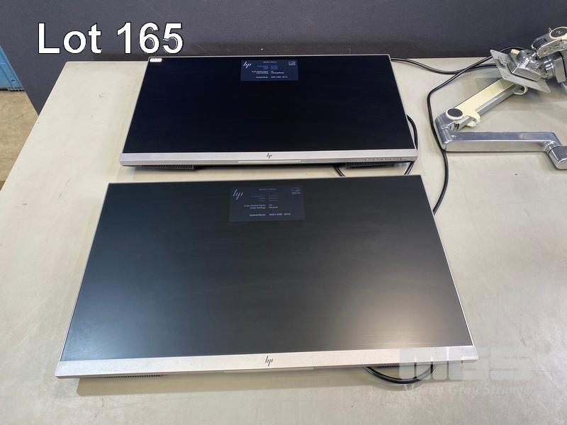 2 x MONITORS, HP ELITEDISPLAY E243 23.8" LED-BL WIDESCREEN, HDMI, DISPLAYPORT, VGA (WITH CABLES) (NO HDMI CABLE) WITH HUMANSCALE DUAL DESK MOUNT MONITOR ARM