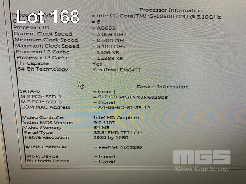 ALL-IN-ONE PC, DELL OPTIPLEX 7480, CORE i5 10500 (10TH GEN) @ 3.1GHz, 8GB DDR4 RAM, 512GB NVMe M.2 SSD, INBUILT 23.8" FHD WIDESCREEN (1920x1080), INTEL HD VIDEO, WEBCAM, 5 x USB, 1 x USB-C, WINDOWS 11 HOME INSTALLED, KEYBOARD & MOUSE S/N:HXXCX53