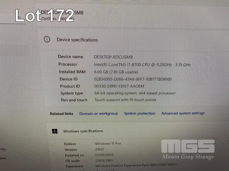 ALL-IN-ONE PC, DELL OPTIPLEX 7460, CORE i7 8700 (8TH GEN) @ 3.2GHz, 8GB DDR4 RAM, 512GB NVMe M.2 SSD, INBUILT 23.8" FHD TOUCHSCREEN (1920x1080), INTEL HD VIDEO, WEBCAM, 5 x USB, 1 x USB-C, WINDOWS 11 PRO INSTALLED, KEYBOARD & MOUSE S/N:8H7T8X2