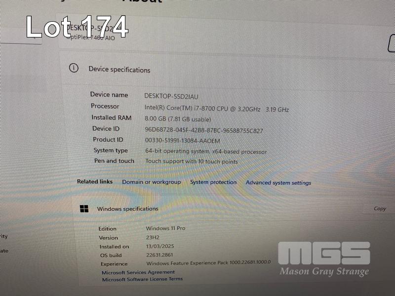 ALL-IN-ONE PC, DELL OPTIPLEX 7460, CORE i7 8700 (8TH GEN) @ 3.2GHz, 8GB DDR4 RAM, 512GB NVMe M.2 SSD, INBUILT 23.8" FHD TOUCHSCREEN (1920x1080), INTEL HD VIDEO, WEBCAM, 5 x USB, 1 x USB-C, WINDOWS 11 PRO INSTALLED, KEYBOARD & MOUSE S/N:8HBX8X2