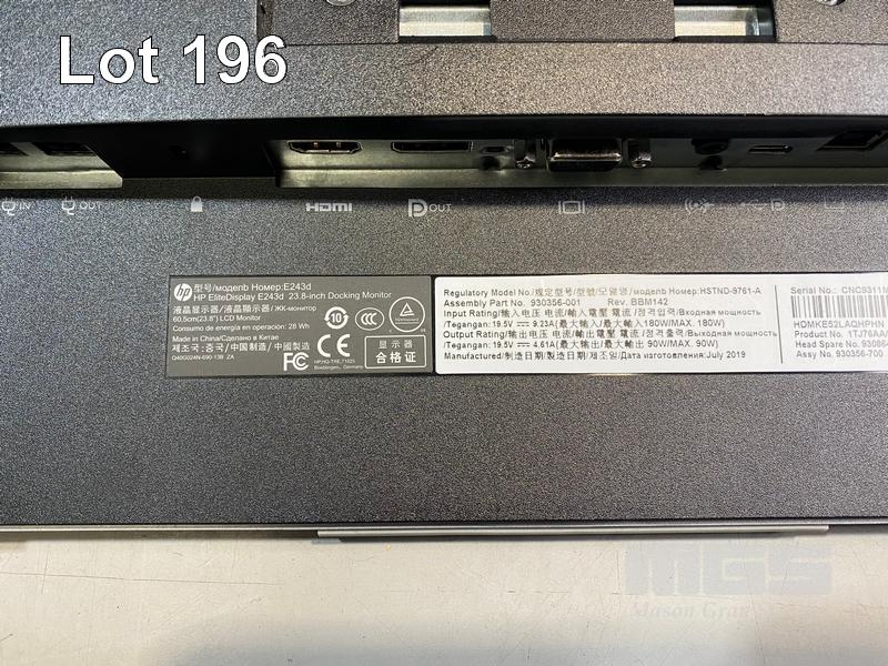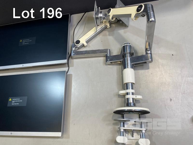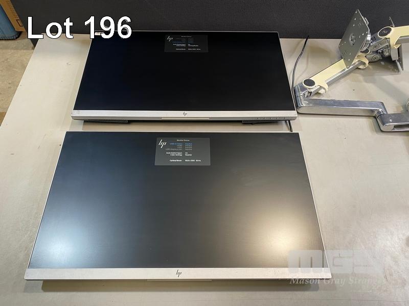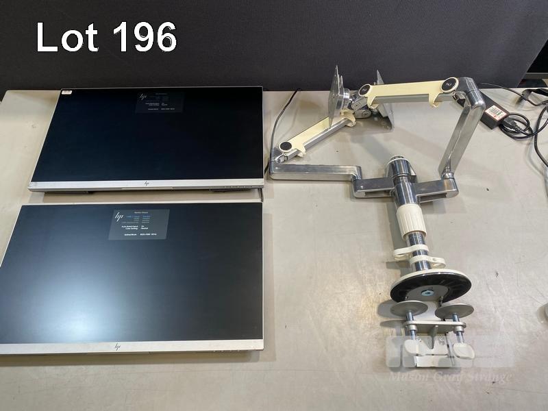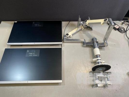 2 x MONITORS, HP ELITEDISPLAY E243d 23.8" DOCKING LED-BL WIDESCREEN, HDMI, DISPLAYPORT, VGA (WITH POWER SUPPLY & CABLES) (NO HDMI CABLE) WITH HUMANSCALE DUAL DESK MOUNT MONITOR ARM