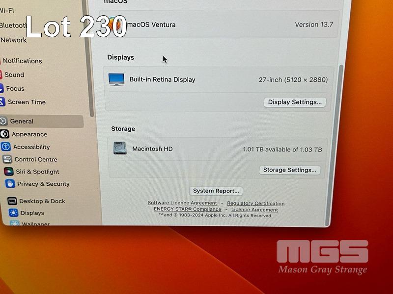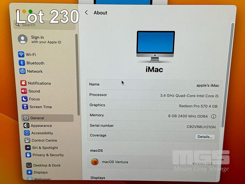 APPLE iMAC (A1419), CORE i5 7500 (7TH GEN) @ 3.4GHz, 8GB DDR4 RAM, 1TB FUSION DRIVE, BUILT-IN 27" RETINA 5K DISPLAY (5120x2880), 4GB RADEON PRO 570 VIDEO, Wi-Fi, BLUETOOTH, MAC OS 13 INSTALLED, KEYBOARD & MOUSE S/N:C02VR0LHJ1GN