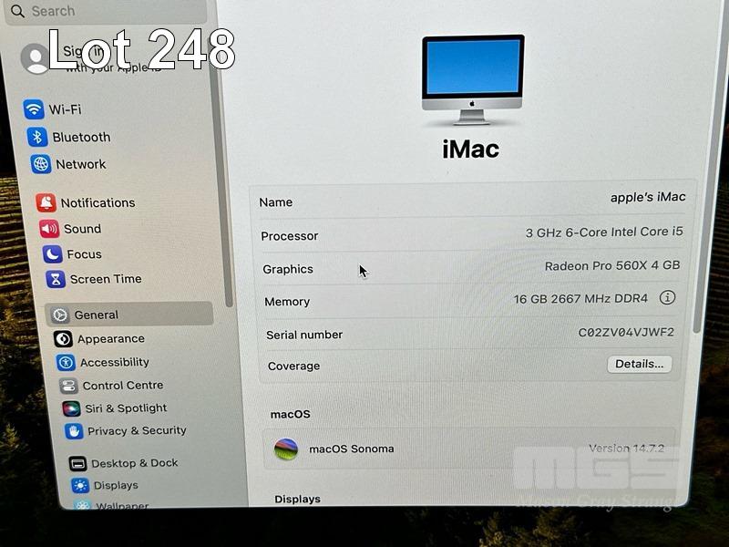 APPLE iMAC (A2116), CORE i5 8500 (8TH GEN) @ 3GHz, 16GB DDR4 RAM, 512GB SSD, BUILT-IN 21.5" RETINA DISPLAY (4096x2304), 4GB RADEON PRO 560X VIDEO, Wi-Fi, BLUETOOTH, MAC OS 14 INSTALLED, SATECHI KEYBOARD & MICROSOFT COMFORT 4500 MOUSE S/N:C02ZV04VJWF2