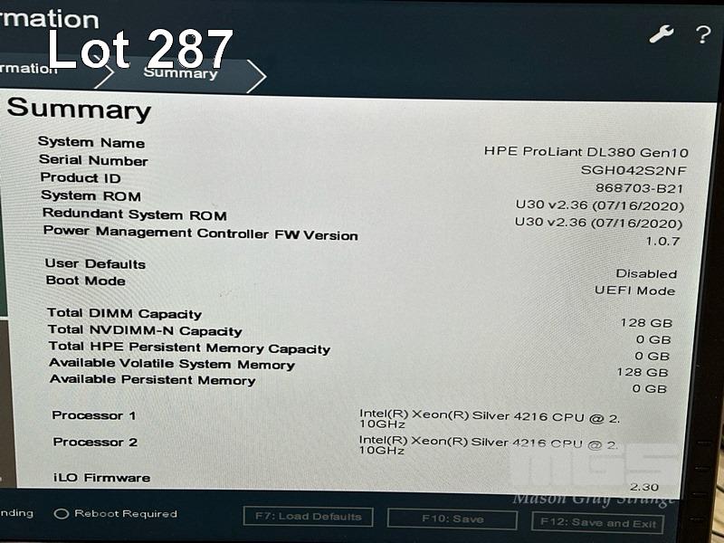 RACKMOUNT SERVER, HP PROLIANT DL380 Gen10, 2U, 2 x XEON SILVER 4216 @ 2.1GHz, 128GB ECC DDR4 RAM, 2 x 300GB SAS HDD, 4 x 146GB SAS HDD, 2 x 500W PSU (NO CABLES) S/N:SGH042S2NF