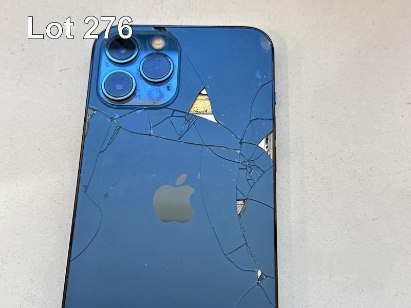 APPLE iPHONE 12 PRO MAX, 512GB, BLUE, MODEL MGDL3X/A, A2411, BATTERY HEALTH 76% (NO CABLE, NO CHARGER) (NOTE: DAMAGED BACK, BATTERY SERVICE MESSAGE) S/N:G6TDK3H10D5C