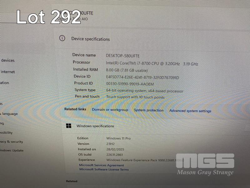ALL-IN-ONE PC, DELL OPTIPLEX 7460, CORE i7 8700 (8TH GEN) @ 3.2GHz, 8GB DDR4 RAM, 512GB NVMe M.2 SSD, INBUILT 23.8" FHD TOUCHSCREEN (1920x1080), INTEL HD VIDEO, WEBCAM, 5 x USB, 1 x USB-C, WINDOWS 11 PRO INSTALLED, KEYBOARD & MOUSE (NOTE: TOUCHSCREEN FAULTY, SCREEN BLEMISH RHS) S/N:89VV8X2
