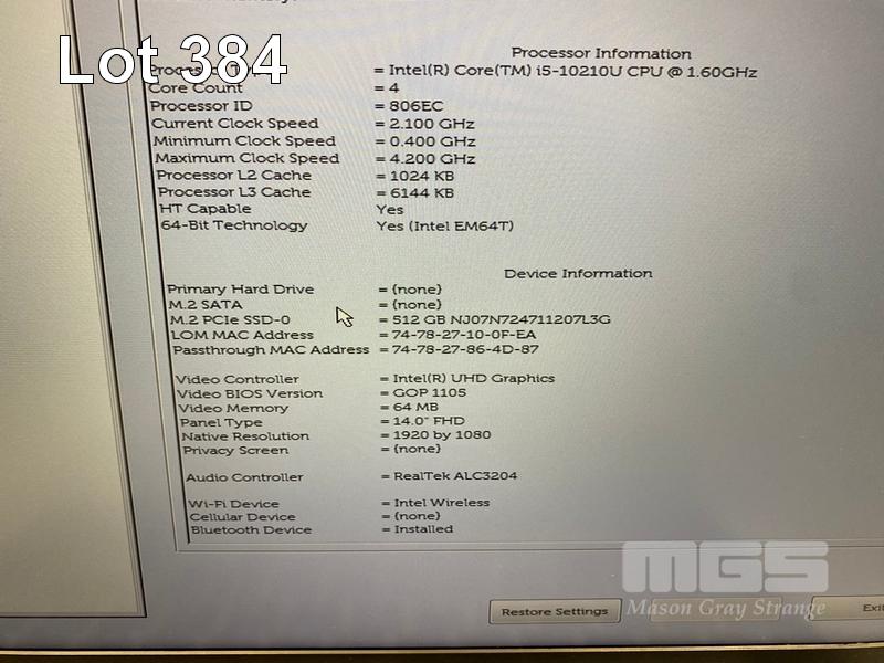 LAPTOP, DELL LATITUDE 5410, CORE i5 10210U (10TH GEN) @ 1.6GHz, 8GB DDR4 RAM, 512GB NVMe M.2 SSD, 14" WIDESCREEN (1920x1080), INTEL UHD GRAPHICS, Wi-Fi, BLUETOOTH, WINDOWS 11 HOME INSTALLED (NO POWER SUPPLY) (NOTE: SPOTS ON SCREEN) S/N:FL7PQ73