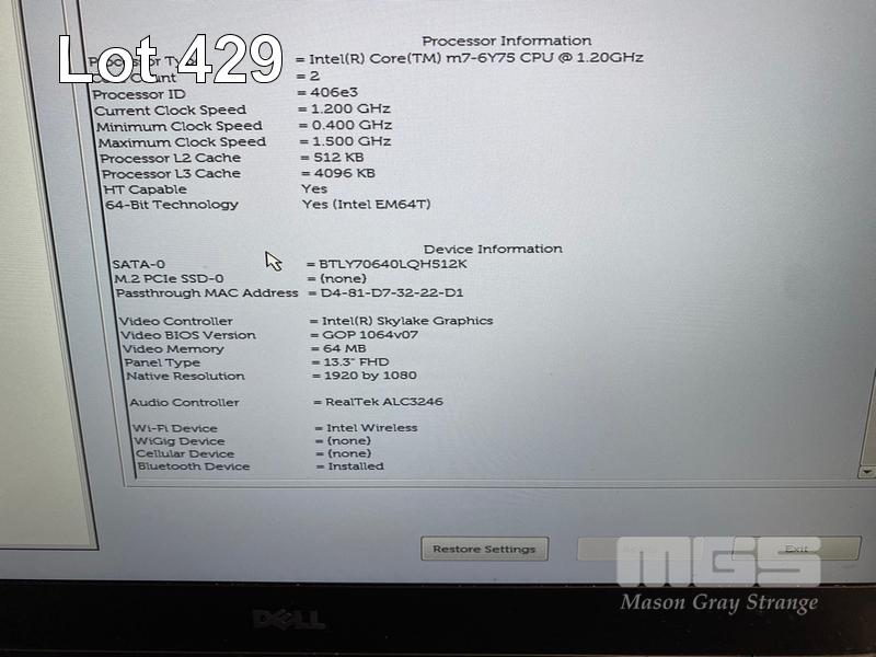 LAPTOP, DELL LATITUDE 7370, CORE m7-6Y75 (6TH GEN) @ 1.2GHz, 16GB DDR3 RAM, 512GB M.2 SSD, 13.3" WIDESCREEN (1920x1080), INTEL HD GRAPHICS 515, Wi-Fi, BLUETOOTH, WINDOWS 10 PRO INSTALLED & USB-C POWER SUPPLY S/N:54XB0G2