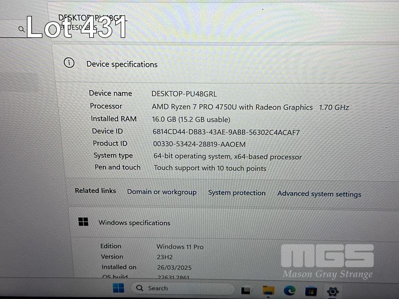 LAPTOP, LENOVO THINKPAD T14 Gen1, TYPE 20UE, AMD RYZEN 7 PRO 4750U @ 2.1GHz, 16GB DDR4 RAM, 512GB NVMe M.2 SSD, 14" WIDESCREEN (1920x1080), Wi-Fi, BLUETOOTH, WINDOWS 11 PRO INSTALLED & USB-C POWER SUPPLY (NOTE: MARKS ON SCREEN) S/N:PF2KVYPC