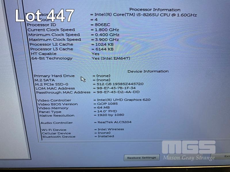 LAPTOP, DELL LATITUDE 5400, CORE i5 8265U (8TH GEN) @ 1.6GHz, 8GB DDR4 RAM, 512GB NVMe M.2 SSD, 14" WIDESCREEN (1920x1080), INTEL UHD GRAPHICS 620, Wi-Fi, BLUETOOTH, WINDOWS 11 HOME INSTALLED & POWER SUPPLY S/N:FB380Z2