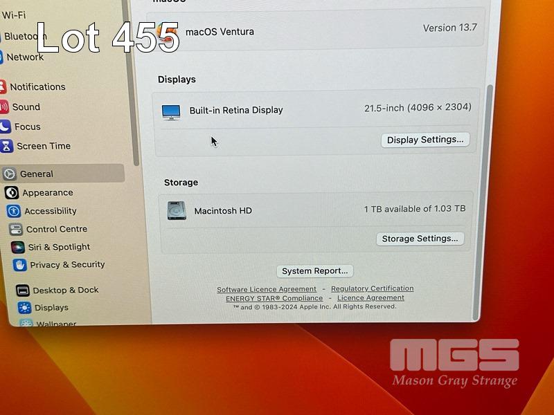APPLE iMAC (A1418), CORE i5 7400 (7TH GEN) @ 3GHz, 16GB DDR4 RAM, 1TB FUSION DRIVE, BUILT-IN 21.5" RETINA DISPLAY (4096x2304), 2GB RADEON PRO 555 VIDEO, Wi-Fi, BLUETOOTH, MAC OS 13 INSTALLED (NO KEYBOARD, NO MOUSE, NO CABLE) S/N:C02XJ08JJ1G9