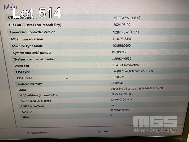LAPTOP, LENOVO THINKPAD T590, TYPE 20N5, CORE i5 8365U (8TH GEN) @ 1.6GHz, 16GB DDR4 RAM, 256GB NVMe M.2 SSD, 15.6" TOUCHSCREEN (1920x1080), INTEL UHD GRAPHICS, Wi-Fi, BLUETOOTH, WINDOWS 11 HOME INSTALLED (NO USB-C POWER SUPPLY) (NOTE: MARKS ON SCREEN) S/N:PF1BNP4X