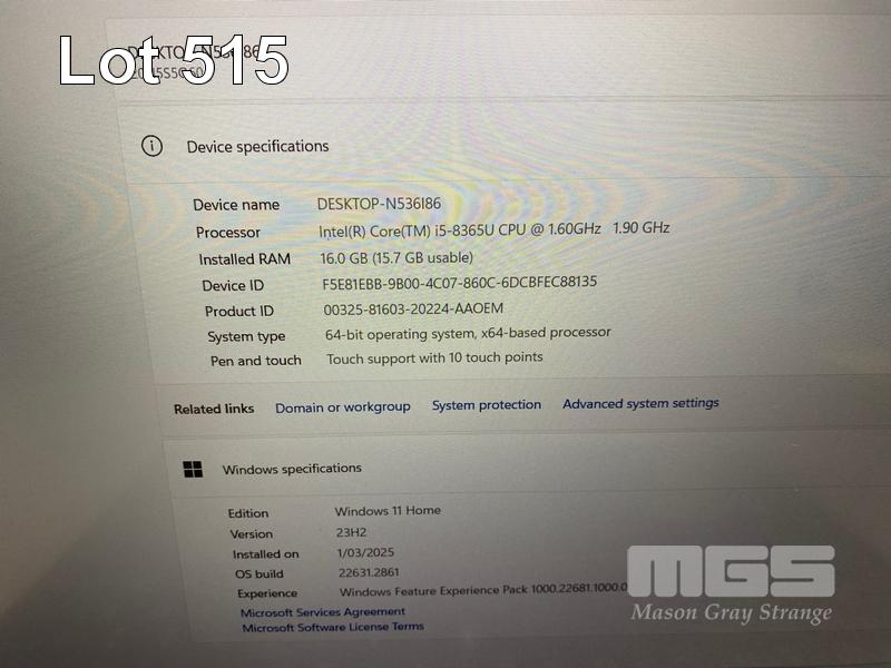 LAPTOP, LENOVO THINKPAD T590, TYPE 20N5, CORE i5 8365U (8TH GEN) @ 1.6GHz, 16GB DDR4 RAM, 256GB NVMe M.2 SSD, 15.6" TOUCHSCREEN (1920x1080), INTEL UHD GRAPHICS, Wi-Fi, BLUETOOTH, WINDOWS 11 HOME INSTALLED (NO USB-C POWER SUPPLY) (NOTE: MARKS & SPOT ON SCREEN) S/N:PF1BNTDJ