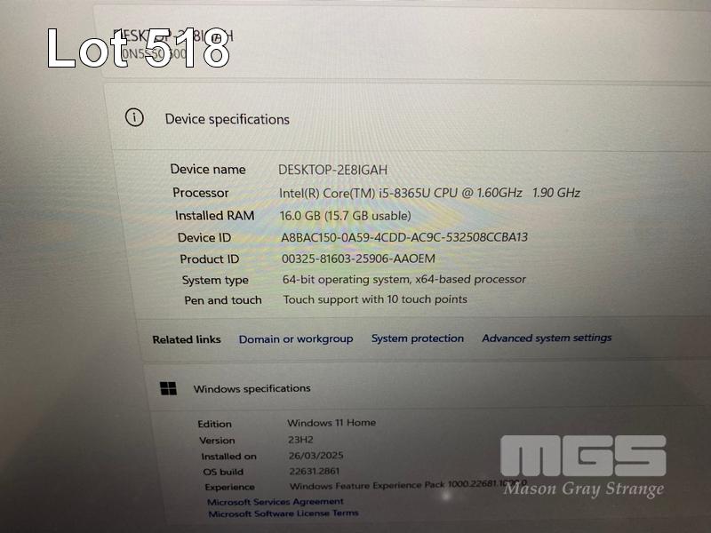 LAPTOP, LENOVO THINKPAD T590, TYPE 20N5, CORE i5 8365U (8TH GEN) @ 1.6GHz, 16GB DDR4 RAM, 256GB NVMe M.2 SSD, 15.6" TOUCHSCREEN (1920x1080), INTEL UHD GRAPHICS, Wi-Fi, BLUETOOTH, WINDOWS 11 HOME INSTALLED (NO USB-C POWER SUPPLY) (NOTE: MARKS & SPOT ON SCREEN) S/N:PF1BP45X