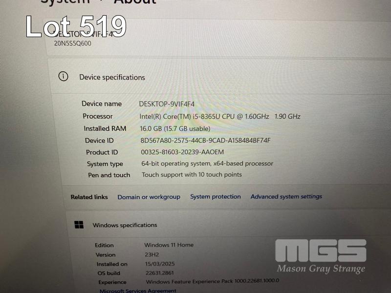 LAPTOP, LENOVO THINKPAD T590, TYPE 20N5, CORE i5 8365U (8TH GEN) @ 1.6GHz, 16GB DDR4 RAM, 256GB NVMe M.2 SSD, 15.6" TOUCHSCREEN (1920x1080), INTEL UHD GRAPHICS, Wi-Fi, BLUETOOTH, WINDOWS 11 HOME INSTALLED (NO USB-C POWER SUPPLY) (NOTE: DAMAGE TO CASING, MARKS & SPOT ON SCREEN) S/N:PF1BNZRS