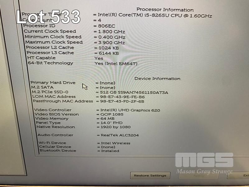 LAPTOP, DELL LATITUDE 5400, CORE i5 8265U (8TH GEN) @ 1.6GHz, 8GB DDR4 RAM, 512GB NVMe M.2 SSD, 14" WIDESCREEN (1920x1080), INTEL UHD GRAPHICS 620, Wi-Fi, BLUETOOTH, WINDOWS 11 HOME INSTALLED & POWER SUPPLY (NOTE: MARKS ON SCREEN) S/N:GKQX2Z2