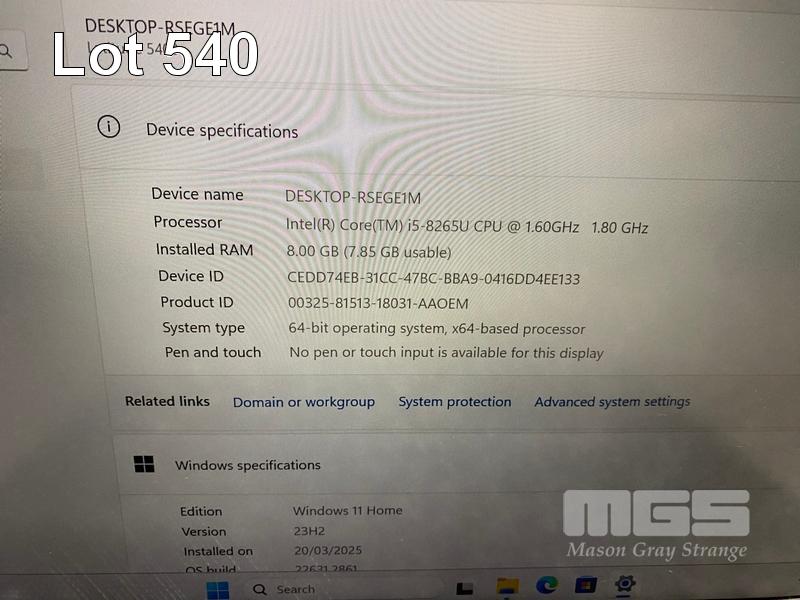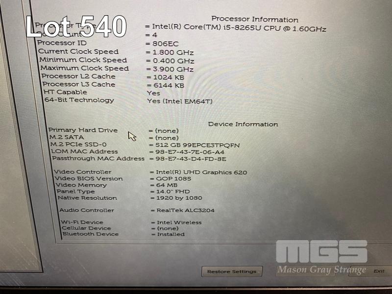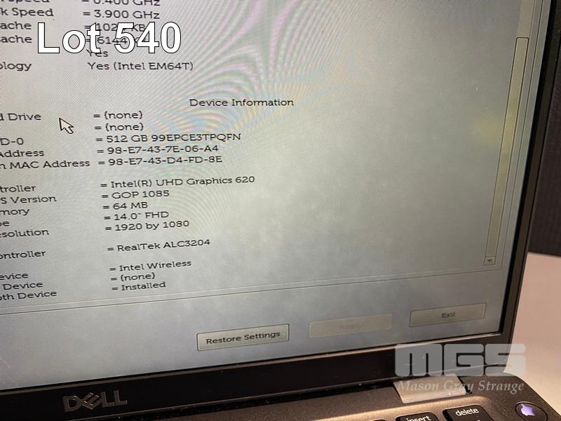 LAPTOP, DELL LATITUDE 5400, CORE i5 8265U (8TH GEN) @ 1.6GHz, 8GB DDR4 RAM, 512GB NVMe M.2 SSD, 14" WIDESCREEN (1920x1080), INTEL UHD GRAPHICS 620, Wi-Fi, BLUETOOTH, WINDOWS 11 HOME INSTALLED & POWER SUPPLY (NOTE: MARKS, SPOTS & BLEMISHES ON SCREEN) S/N:DWC7ZY2
