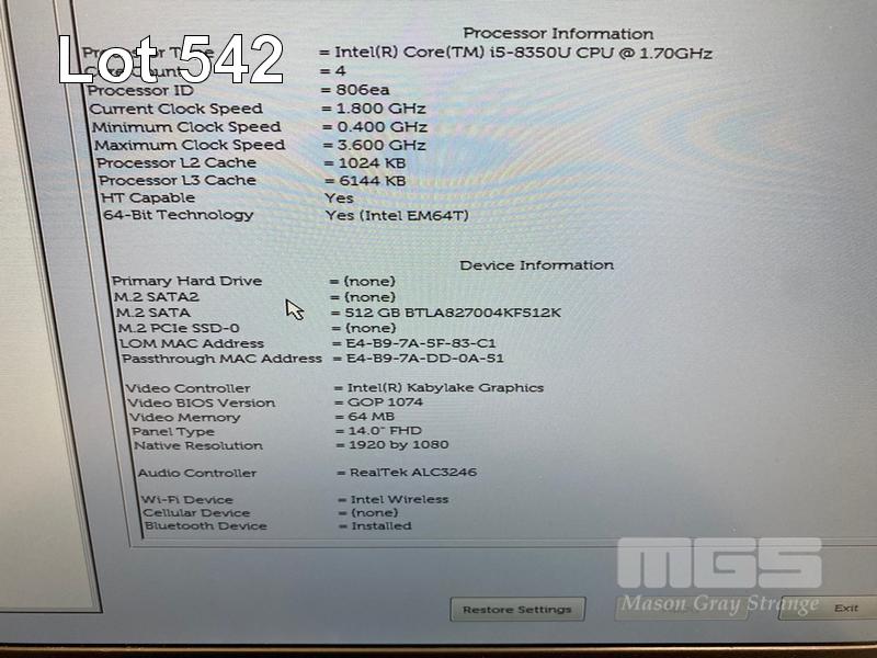 LAPTOP, DELL LATITUDE 5490, CORE i5 8350U (8TH GEN) @ 1.7GHz, 8GB DDR4 RAM, 512GB M.2 SSD, 14" WIDESCREEN (1920x1080), INTEL UHD GRAPHICS 620, Wi-Fi, BLUETOOTH, WINDOWS 11 HOME INSTALLED & POWER SUPPLY S/N:9G16KR2