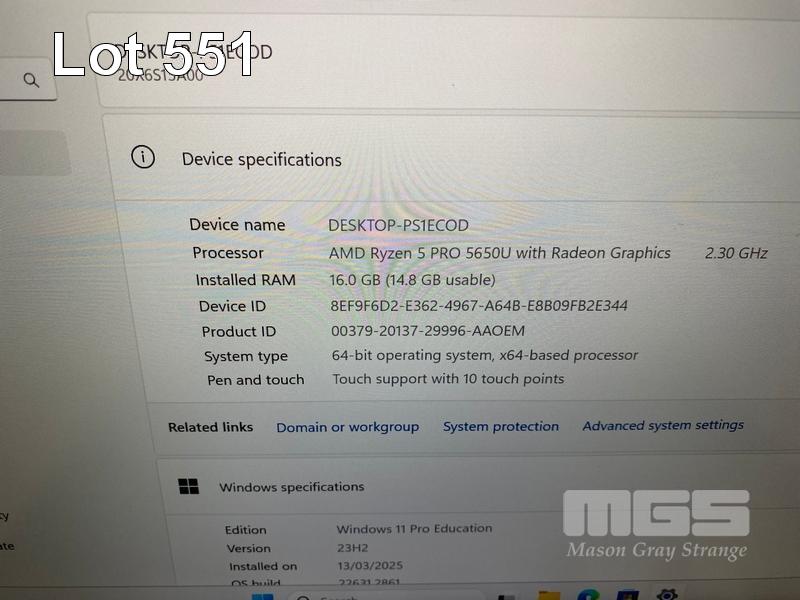 LAPTOP, LENOVO THINKPAD L14 Gen2, TYPE 20X6, AMD RYZEN 5 PRO 5650U @ 2.3GHz, 16GB DDR4 RAM, 256GB NVMe M.2 SSD, 14" TOUCHSCREEN (1920x1080), Wi-Fi, BLUETOOTH, WINDOWS 11 PRO EDUCATION INSTALLED (NO USB-C POWER SUPPLY) (NOTE: MINOR MARKS ON SCREEN) S/N:PF3K7SQ6