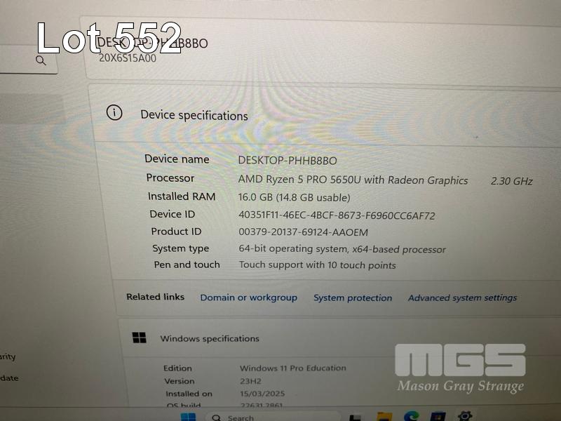LAPTOP, LENOVO THINKPAD L14 Gen2, TYPE 20X6, AMD RYZEN 5 PRO 5650U @ 2.3GHz, 16GB DDR4 RAM, 256GB NVMe M.2 SSD, 14" TOUCHSCREEN (1920x1080), Wi-Fi, BLUETOOTH, WINDOWS 11 PRO EDUCATION INSTALLED (NO USB-C POWER SUPPLY) (NOTE: MINOR MARKS ON SCREEN) S/N:PF3GS2JL