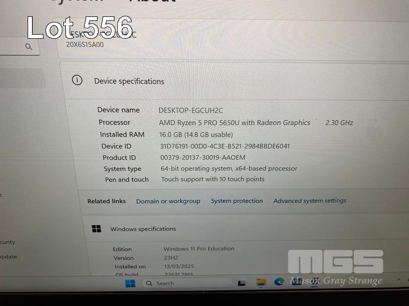 LAPTOP, LENOVO THINKPAD L14 Gen2, TYPE 20X6, AMD RYZEN 5 PRO 5650U @ 2.3GHz, 16GB DDR4 RAM, 256GB NVMe M.2 SSD, 14" TOUCHSCREEN (1920x1080), Wi-Fi, BLUETOOTH, WINDOWS 11 PRO EDUCATION INSTALLED (NO USB-C POWER SUPPLY) (NOTE: MARKS ON SCREEN) S/N:PF3GR96B